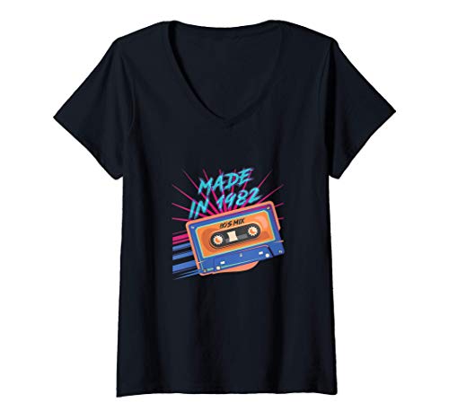 Donna Vintage 1982 realizzata nel 1982 38 ° compleanno 80s Mix Maglietta con Collo a V
