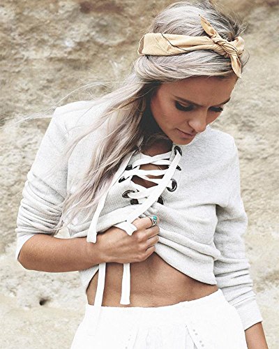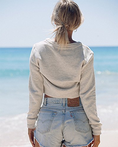 Donne Camicetta Corto di Base Felpa Sportive Casual Top Manica Lunga Colore Solido Grigio XL