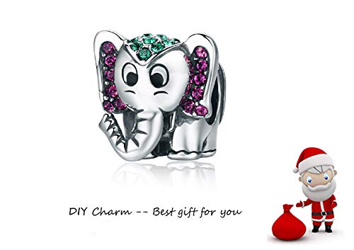 ENYU Donne Charms Lucky Elephant Charm Pandora Argento Placcato Simpatico Animali smaltato Adatto Braccialetto Europeo Donna Regalo di Natale