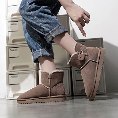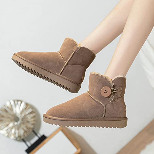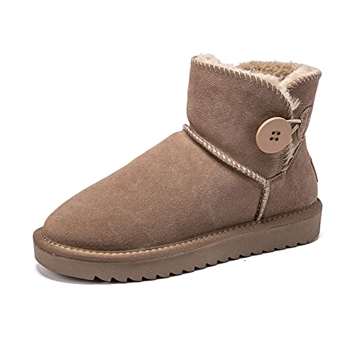 Donne Inverno Caldo Neve Stivali All'aperto Foderato in Pelliccia Anti Scivolo Caviglia Stivaletti Casuale Scarpe Cachi 35 EU