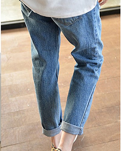 Donne Jeans Rotti Pantaloni A Vita Alta Casual Sciolto Jeans Strappati Ginocchia Azzurro Chiaro 32