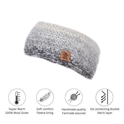 Donne di lana/mohair orecchio caldo fascia in pile foderato a mano grigio neutro, taglia unica fatta a mano Pachamama commercio equo e solidale