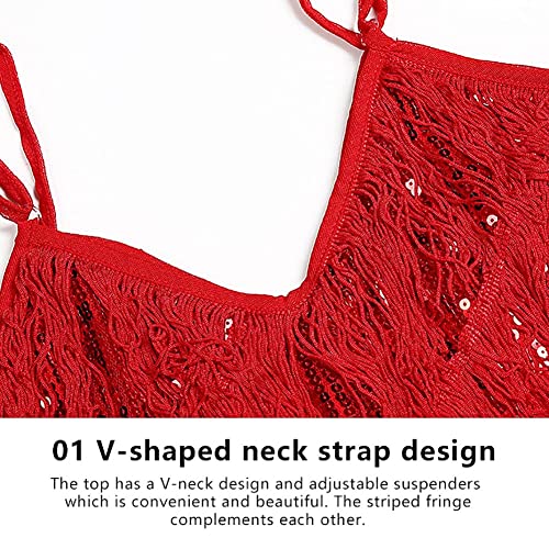 CARATTERISTICHE: Paillettes scintillanti e nappe sulla parte esterna. Il design del top con scollo a V sembra più affascinante.