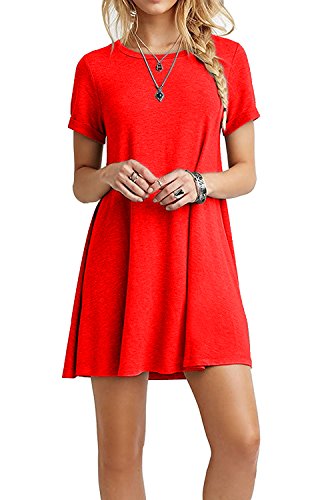 Zero City Donne Manica Corta Casual Sciolto Cotone Semplice Tunica Tunica Abiti Rosso L