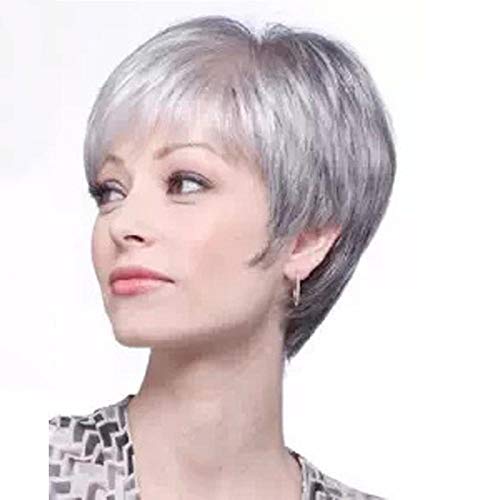 Donne di mezza età e anziane con capelli lisci corti grigio-argento, 25 cm, capelli simulati, seta in fibra chimica ad alta temperatura, parrucche utilizzate dalle donne per l'uso quotidiano