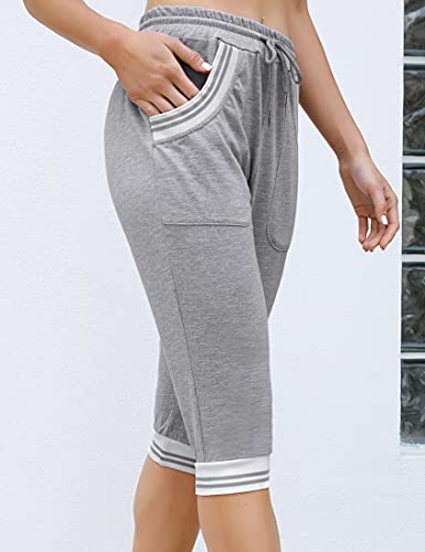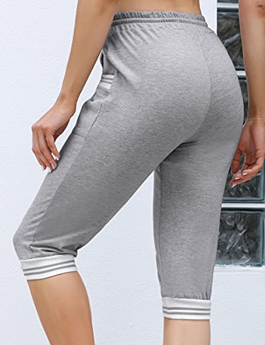 NB Donne Pantaloni della Tuta Cropped Jogger Pantaloni Da Corsa In Cotone Lounge Atletico Pantaloni Sportivi Coulisse Vita Pantaloni Capri con Tasche Laterali, Grigio chiaro, S
