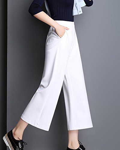 Quge Donne Pantaloni Epoca delle a Vita Alta Gamba Larga Svasato Palazzo Pants Trousers Bianca S