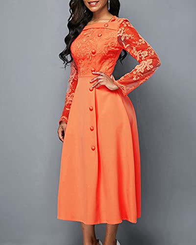 Design: Cerniera Nascosta Sul Retro, Rappezzatura Del Merletto, A Vita Alta UNA Linea di Swing, Button Down, lunghezza Midi, Vestito Da Partito di Sera