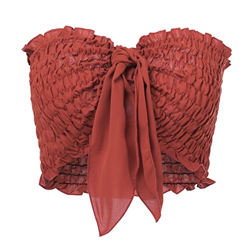 Boho delle Donne 2 Pezzi Abiti Nodo Anteriore del Legame di Arco Tubo Crop Top con Pantaloncini A Vita Alta Set (Brick Red,S,S)