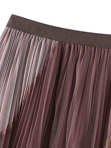 Donne Primavera Patchwork Piegato Tutu Flowy Pizzo Midi Swing Prom Gonna Ragazza Causale Vita Alta Tulle Abito A-Line Estate Donne Mesh Elastic Layered Gonna (Dark Pink, One Size)