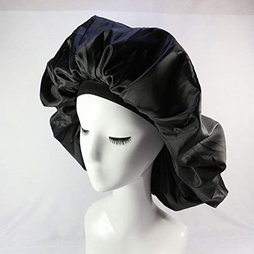 Le donne Satin Bonnet sonno Bonnet Cap Extra Large Double Layer raso Design Cappellino morbido elastico Dormire capelli Bonnet 1pc nero