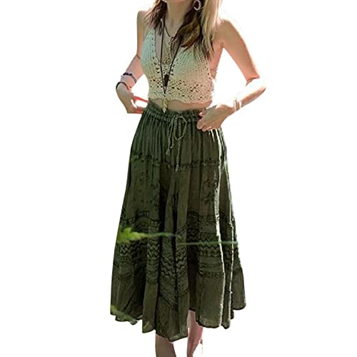 Donne anni '90 Vintage Gonna Lunga Vita Alta Fata Grunge A-Line Midi Gonne E Ragazze Boho Streetwear, Verde, 40
