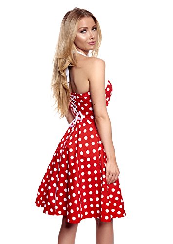 Donne Vintage Rockabilly abito rosso con puntini bianchi. Polka Dots. Jack 1253-f6050Rosso con i puntini bianchi, Taglia 44