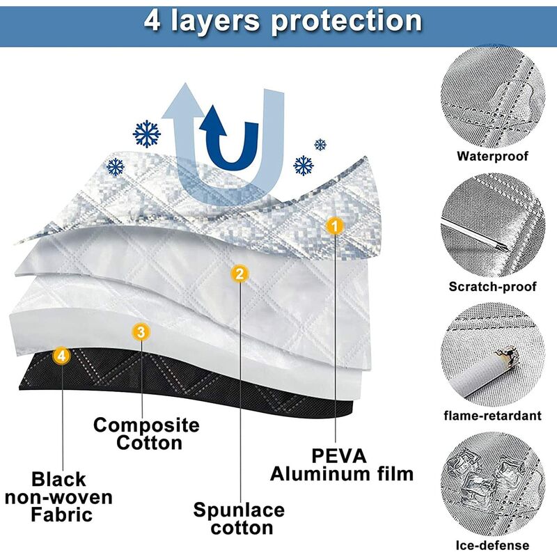 Materiale a 4 strati - - 4 strati (foglio di alluminio PE + cotone ad ago + cotone di seta + nuovo materiale in pile), materiale ultra spesso, rivestimento in alluminio su entrambi i lati, resistenza alle alte temperature, resistenza al calore. antistrappo, durevole. 【Magnets Edge Design】 - La nostra copertura per finestrino dell'auto ha 9 magneti super potenti sui bordi e 2 cinghie elastiche da appendere allo specchietto retrovisore, il manto nevoso può rimanere in posizione anche con vento forte e non verrà portato via. Deve essere l'investimento più economico per proteggere il tuo parabrezza da graffi e crepe. 【Adatto a tutte le stagioni】 - Proteggerà il parabrezza della tua auto da gelo e polvere in primavera, pioggia e raggi UV in estate, foglie autunnali e neve o ghiaccio in inverno . Non solo riduce il tempo necessario per eliminare il ghiaccio o la neve, ma ti dà anche un parabrezza trasparente. 【Facile rimozione e installazione】 - Il manto nevoso è un materiale morbido che