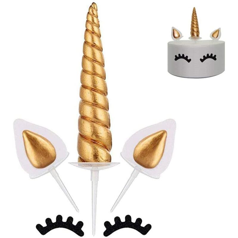 Pacchetto incluso - Il kit per decorare la torta include 1 corno di unicorno, 2 orecchie e 2 ciglia. [Disegno unicorno carino] Splendidamente progettato, creativo e fantasioso per rendere la decorazione della torta lucida e affascinante, perfetta per la torta di unicorno brillante e carina fai-da-te. [Materiale di alta qualità] Realizzato in materiale plastico trasparente di alta qualità, sicuro e non tossico, nessun odore particolare, non commestibile, usato solo come decorazione per torte. [Ampia applicazione] Il perfetto set di decorazioni per unicorno per compleanni di unicorno, baby shower, feste sfrenate e altro ancora.