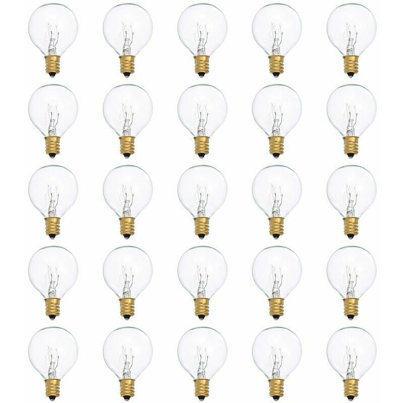 Cerchi lampadine al tungsteno G40 che offrano un'ottima illuminazione e una bolletta economica? Che cosa stai aspettando? Vieni e divertiti! Caratteristiche: lampadine al tungsteno G40, base lampadina universale E12, comodo da usare e installare, alta luminosità. Eccellente lampadine al tungsteno, luce senza sfarfallio e antiriflesso senza flash o radiazioni, può tenere gli occhi lontani dal burnout. Le lampadine in vetro trasparente forniscono una luce bianca calda, il colore della luce bianca calda 2100k crea un'atmosfera romantica per te. Oltre 1000 ore di durata, sopportabile e raramente devono essere sostituite. Ideale per varie luci a stringa G40, comprese luci decorative per matrimoni e luci ornamentali. Specifiche: Tensione di ingresso: AC120v Potenza di ciascuna lampadina: 7W±10% Flusso luminoso: 26+20%lm Colore della luce: bianco caldo (2100k) Base della lampadina: E12 Angolo del fascio: 360° Durata della vita: gt;