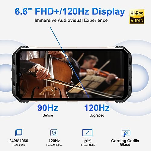 【Schermo Waterdrop IPS da 6,58" FHD+ 120Hz】Lo rugged smartphone di DOOGEE VMAX è dotato di un display FHD+ da 6,58 pollici con una risoluzione dello schermo di 2408*1080, una frequenza di aggiornamento dello schermo ultra elevata di 120Hz, il display più luminoso e con la maggior precisione dei colori, Ultra- velocità di risposta rapida, fornendo una navigazione web e un'esperienza di gioco più fluide.Il rugged smartphone è dotato di uno schermo Corning Gorilla Glass per la massima protezione