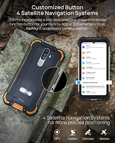 [Pulsante Personalizzato e 4 sistemi di Navigazione Satellitare] - Il pulsante personalizzato consente di accedere rapidamente a torcia, fotocamera, chiamata di emergenza SOS, ecc. 4 Sistemi di navigazione satellitare per un posizionamento più preciso. Il nostro telefono ha anche molte funzioni, come lo sblocco delle impronte digitali, la bussola, ecc. S58 Pro, un buon aiuto per le tue attività all'aperto. Comodo per qualsiasi attività all'aperto e lavori