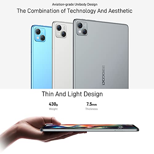 DOOGEE T10 Tablet 10,1 pollici Android 12, 15GB RAM+128GB ROM(TF 1TB), TÜV SÜD Rheinland Protezione Occhi, 2 Altoparlanti Hi-Res Audio, 8300mAh, 13MP+8MP, 2.4/5G WiFi + Dual 4G LTE, GPS,OTG, Blu