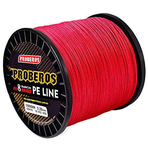 DOOGL Linea di Pesca Intrecciata 8 Fili Abrasione Linea Resistente 1000m Linee Intrecciate Intrecciate Incredibile Zero Stretch Line da Pesca Treccia,Rosso,30LB(0.23mm)