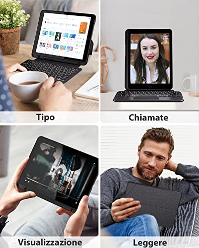 DESIGN COMPLETAMENTE SEPARABILE - La custodia e la tastiera si collegano tramite magnete e possono essere completamente separate, permettendoti di controllare il tuo iPad da remoto tramite tastiera. Se non hai bisogno di usare la tastiera per un po', porta con te il tablet con la custodia.