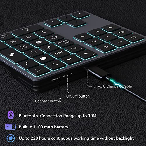 Doohoeek Tastiera Bluetooth retroilluminata per iPad Procreate, tastiera ricaricabile per Procreate e scorciatoie per iPad e tablet grafici, grigio