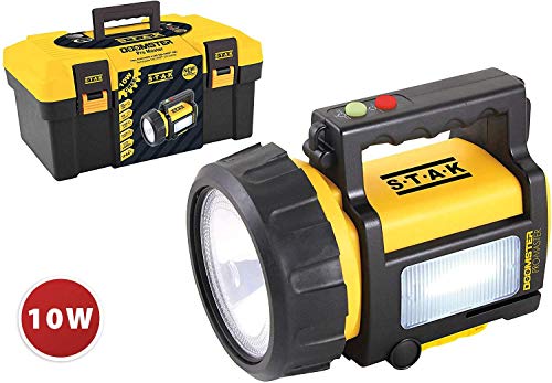 Stak Doomster PRO Master Faro Ricaricabile LED CREE 700 Lumen (10W). con Lanterna, Luce Rossa Laterale, Power Bank. con Cassetta e caricatori. IP44 e IK08, Giallo