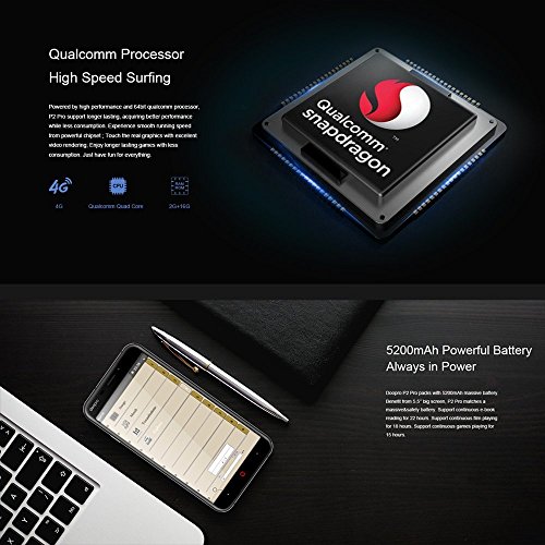 DOOPRO P2 Pro Smartphone 4G Android 6.0 ( Qualcomm MSM8909 Quad-Core 1.3GHz, 5.5'' IPS Schermo, 2GB RAM 16GB ROM, 2MP+5MP Camera, Fingerprint ID, Dual SIM, Batteria 5200mAh,Super Power Saving Mode)