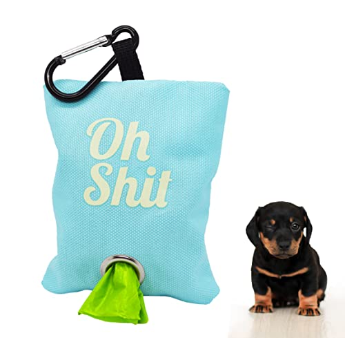 DOOSTY Dispenser di sacchetti per le escrementi del cane 'Oh Shit' - Dispenser per conservare sacchetti di escrementi per cani - I migliori accessori per cani - (Celeste)