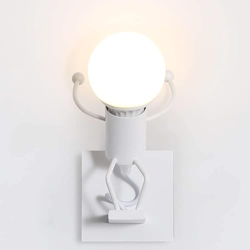 Dopastore Applique da Parete con Attacco E27 Lampada da muro Moderna Design Omino Alzato IP20 Per Interni Camera Soggiorno Hotel B&B (Bianco)