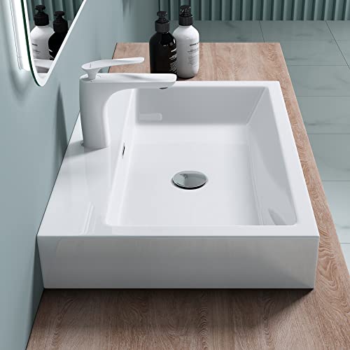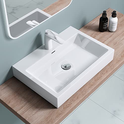 Doporro Lavabo da Appoggio, Lavabo Bagno Sospeso60x42x10cm, Lavandino Bagno Rettangolare da Minerale Fuso Colossum06-600