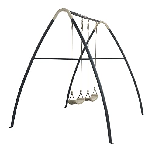 MATERIALI DI ALTA QUALITÀ: L'altalena in metallo è fatta di acciaio verniciato a polvere ed è galvanizzata dentro e fuori. Per una maggiore sicurezza, l'altalena ha quattro ancoraggi a terra che possono essere ancorati nel cemento. L'altalena è super facile da pulire, così i vostri piccoli possono iniziare a dondolare subito dopo una piccola pioggia. Le corde regolabili dell'altalena assicurano una lunga durata in modo che l'altalena possa crescere con i vostri bambini per molti anni.