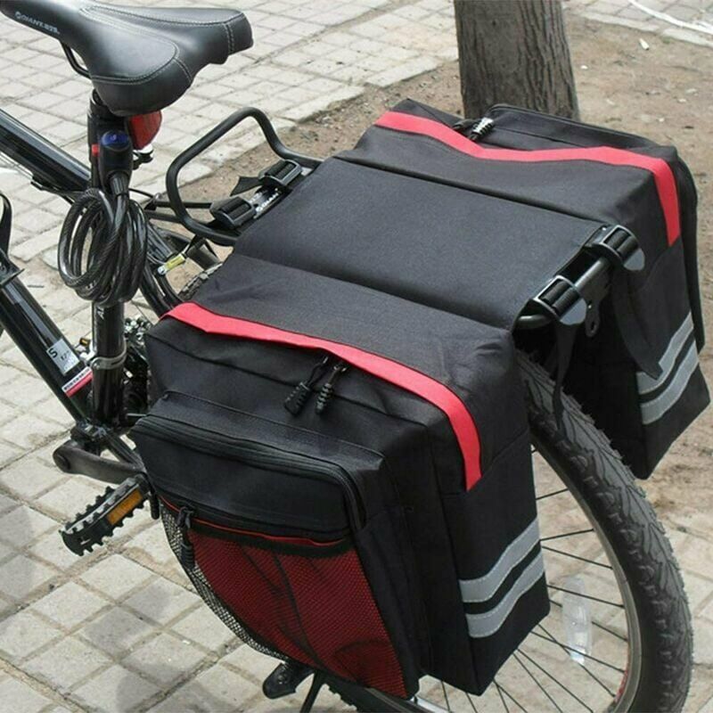1. MATERIALE? Borsa posteriore per bici realizzata in tessuto di nylon impermeabile ad alta densità, design elegante e classico, può far fronte alla maggior parte delle condizioni stradali, ha un'elevata resistenza all'abrasione, un'elevata resistenza allo strappo e una lunga durata.Inoltre, l'interno della borsa è in gomma rivestimento, che può proteggere bene la tua proprietà. 2. GRANDE CAPACITÀ? 15 litri su un lato, circa 30 litri su entrambi i lati, facile da trasportare tutto il necessario in movimento, reparti indipendenti e ampia tasca. Due confezioni laterali ti consentono di inserire quanti più oggetti possibile, il che offre spazio sufficiente per te. Ci sono 1 tasche in rete sullo strato più esterno su entrambi i lati per un facile accesso. ?3. INSTALLAZIONE E RILASCIO RAPIDO? La borsa da sella è dotata di bottoni automatici regolabili per fissare la borsa da bici. non è necessario installare alcun attrezzo, si adatta a tutte le bici con sedile posteriore, completa