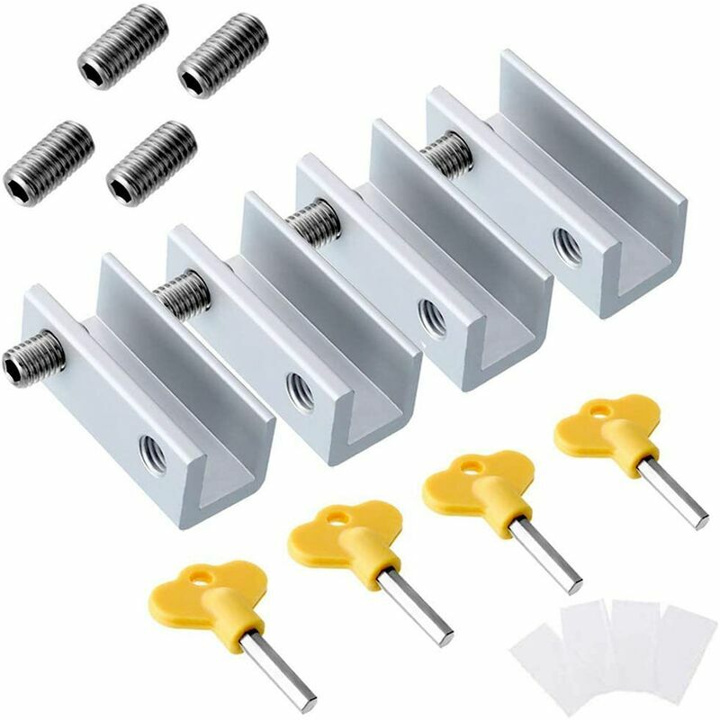 Chiusure di sicurezza: questa serratura con fermafinestra scorrevole per la casa e l'ufficio, puoi tenere le finestre parzialmente aperte o chiuse per evitare il potenziale pericolo che bambini e animali domestici si arrampichino o vengano afferrati dalla porta. Inoltre, impedisce al ladro di entrare. .Robusto e durevole - La serratura della finestra scorrevole è realizzata in lega di alluminio, resistente e antiruggine, riutilizzabile. Viene fornito con guarnizioni protettive in plastica per evitare graffi o danni alla finestra. .Facile da installare - Questa finestra si chiude con una chiave. Installazione rapida in 3 passaggi. Nessun utensile o perforazione richiesta. Le nostre serrature a doppio foro sono più adatte per l'uso in finestre/porte pesanti per aggiungere sicurezza. .Ampia applicazione - Serrature per finestre progettate per finestre scorrevoli orizzontali, finestre scorrevoli verticali e porte scorrevoli come porte del patio, porte scorrevoli in vetro, finestre