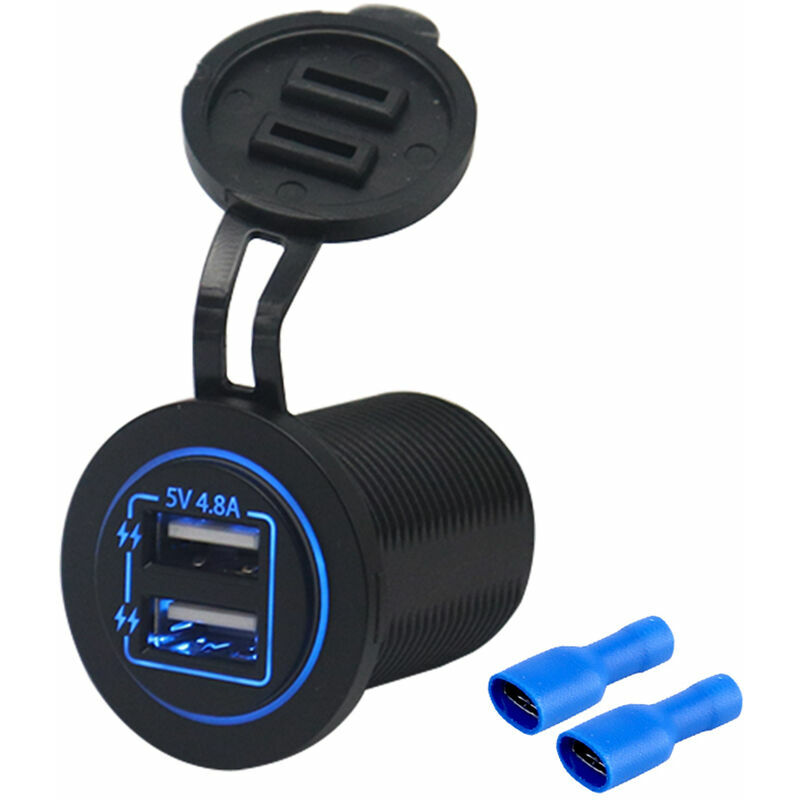 Caratteristiche: Doppia presa per caricabatterie USB, porta USB con uscita di alimentazione da 4,8 A/5 V, adatta per la maggior parte dei dispositivi alimentati tramite USB. Indicatore LED integrato, consente di verificare facilmente se la connessione è andata a buon fine e consente un utilizzo rapido e semplice al buio. Design impermeabile, resistente all'acqua e alla polvere grazie alla copertura in gomma USB, protegge il circuito interno. Con l'hardware necessario, la presa può essere fissata saldamente sul pannello. Adatto per auto, barca, marina, moto, camper, camion, camper, ecc. Fornisce alimentazione per telefoni cellulari, fotocamere digitali, tablet, ecc. Specifiche: Tensione di ingresso: 12/24V Materiale: ABS Colore: Nero Colore LED: Rosso/Blu/Verde (Opzionale) Dimensioni confezione: 36,6*49, 6*30mm / 1,44*1,95 * 1,18 pollici Peso della confezione: 34,8 g / 1,23 once Modalità di cablaggio: da oro a positivo, da argento a negativo
