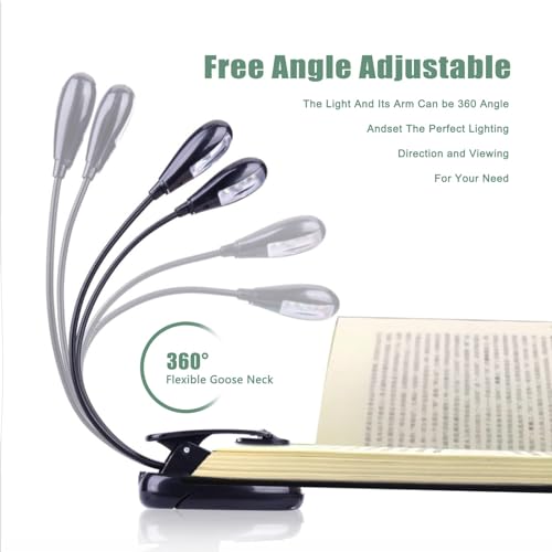 Elegant design- Flexible arms to adjust its height and angle, Rotate, twist and turn. The flexible arm will hold the lamp in your desired position. New Clip design with double side grip.Convenient Reading,Use both arms of the lamp to individually cover both pages of your book.