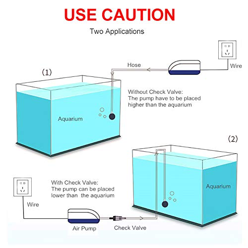 NOTA: Pompa di aria non può essere immerso in quanto non è a prova di acqua, per favore installato categoricamente 20 centimetri sopra il livello dell'acqua o installare valvola di non ritorno, per evitare che il liquido rifluisca.