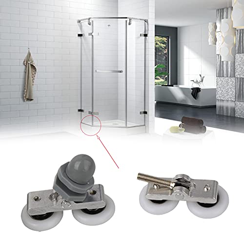 【Scorrimento】 I rulli per porte della doccia a doppia sommità per porte consentono alla porta di scorrere e risparmiare sforzo, quindi la porta dovrebbe mantenere il suo equilibrio, evitare che oscilli e garantire un funzionamento regolare.
