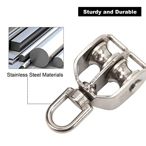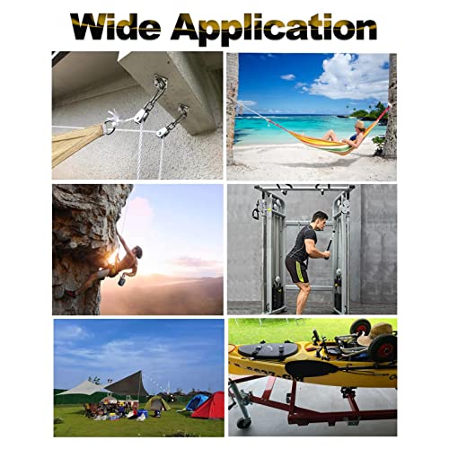 ACCIAIO INOSSIDABILE RESISTENTE ALL'USURA: il blocco rotante è realizzato in affidabile acciaio inossidabile 304, durevole, resistente alla ruggine, resistente all'usura, resistente alla corrosione, adatto per l'uso con funi in applicazioni sia interne che esterne