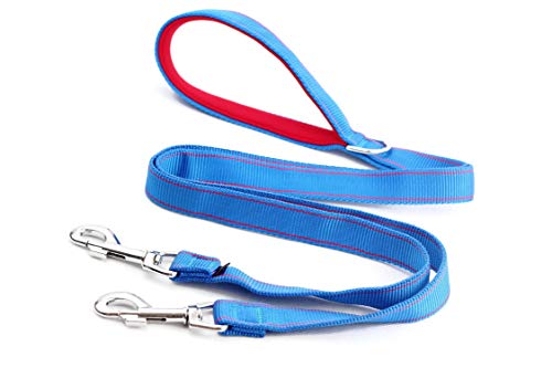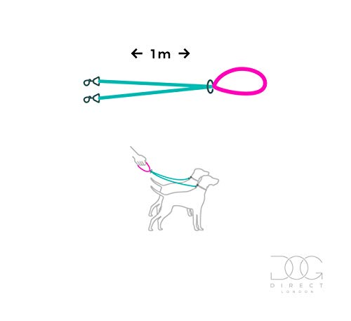Doppio guinzaglio per cani da 100 cm, duplex con guinzaglio doppio, con impugnatura in neoprene aggiuntiva, resistente, realizzato a mano, originale DogDirect London Cou1mNeo (blu-rosso) DN7