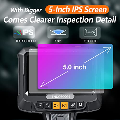 Doppio Lente Telecamera Endoscopio, SGAINUL Telecamera Ispezione Tubi con Schermo IPS da 5.0 Pollici Endoscopica Industriale IP65 Impermeabile con 8 + 1 Luce, 32G Scheda TF con Valigetta-5M