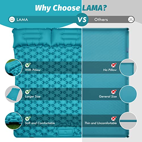 LAMA Doppio Materassino da Campeggio Materasso ad Aria Gonfiabile per 2 Persone, 195 x 125 x 10 cm Materassino per Dormire Ultraleggero con Cuscino a Pompa d'Aria e Pressa per il Campeggio Blu Pavone