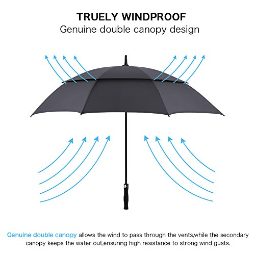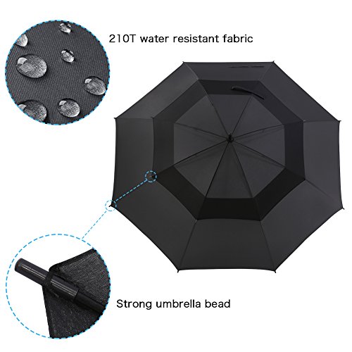 Doppio ombrello da golf ventilato, antivento, 157,5 cm, apertura automatica, extra-large, grande, oversize, ombrello da pioggia per uomini e donne, Black