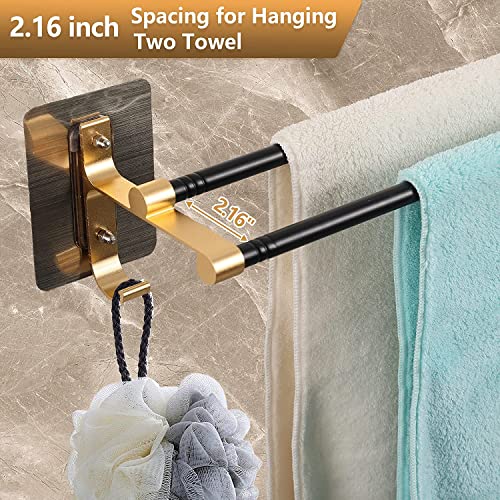 UTILE - Doppio Portasciugamani con staffa dorata con gancio darà alla tua casa una sensazione di stile moderno ed elegante. Rispetto al portasciugamani singolo, il portasciugamani doppio con gancio è più comodo per appendere più asciugamani o luffa in un piccolo spazio.