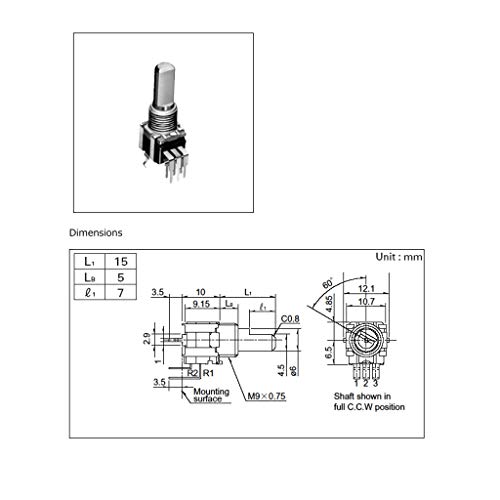 50 kOhm (50K) doppio potenziometro lineare Alpi albero 15mm, con fermo centrale