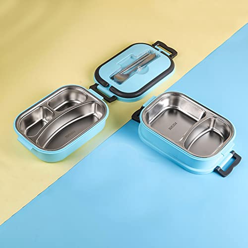 【LUNCH BOX ACCIAIO】:il bento box inox ha 3 scomparti e posate, che separeranno il cibo principale, frutta, snack o sugo. il design diviso consente di conservare il cibo separatamente senza mescolare i sapori. assicurati che tu e la tua famiglia mantenga una dieta equilibrata e mantenere la salute.