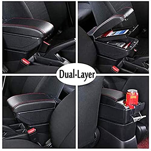 Doppio Strato Centrale Console Scatola Braccioli per Renault Clio 4, Bracciolo In Pelle Poggiabraccio Console Centrale Vano Portaoggetti Accessori Interni(Nero)