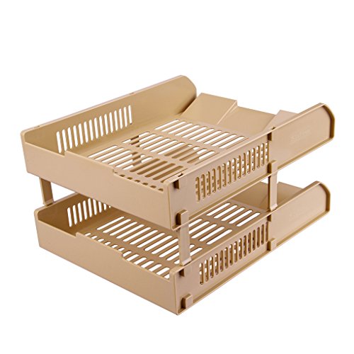 Doppio strato di materiale per ufficio in plastica impilabile per documenti e lettere e documenti, organizer per documenti, formato A4, per desktop cachi