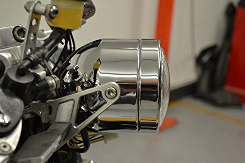 SONO UN FANALE ANTERIORE REALMENTE MOLTO SOLIDO: funzione 1: luce anabbagliante / funzione 2: luce abbagliante / funzione 3: luce laterale / di parcheggio. Cromo per fari e staffe. Le staffe si adattano senza rimuovere le forche dalle staffe