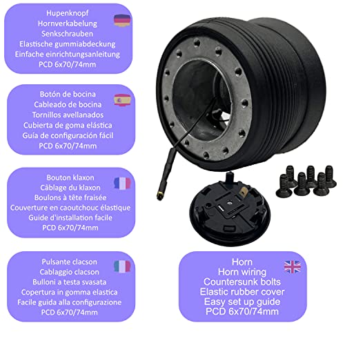 Alta qualità materiali, adatto con ogni volante, facile installazione, Istruzioni sulla scatola, nonché fili e viti. Pulsante clacson incluso.